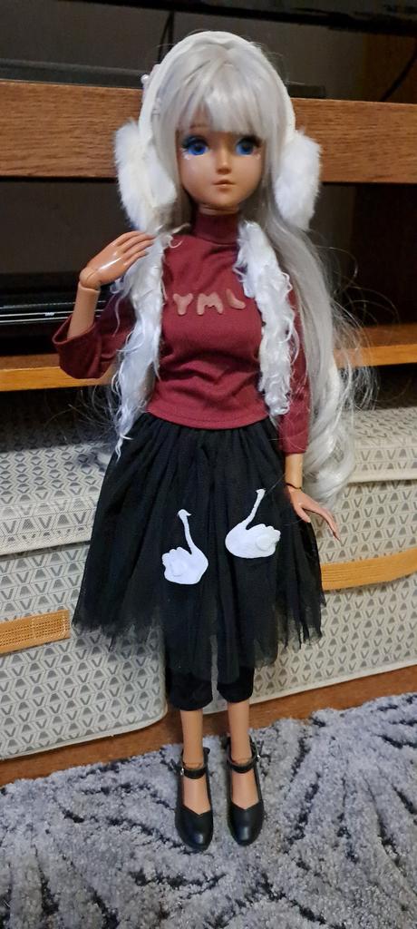 Strhla jsem hvězdu za lepidlo na sukni...sukni jsem od lepidla sotva oddělila...sluchátka jsou vůbec přilepena ledabyle, takovou kvalitu jsem nečekala...Vhodné pro kloubové panenky 60 cm.(1/3.)