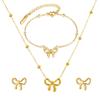2Pcs Elegant Jewelry Set Pearls Beaded Necklace Butterfly Knot Pendant Neckchain Adjustable Choker Ornament for Women