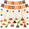 31 PCS Thanksgiving Hanging Ceiling Swirl Pendant & Hanging Thanksgiving Banner, Autumn Themed Spiral Turkey Maple Leaves For Thanksgiving Home,