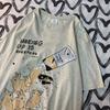 American Retro Rabbit Print Short Sleeved t-shirt For Men Women In Harajuku Lazy Style Pure Cotton Versatile Round Neck Tee