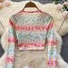 Jarní tisk Office Work Dvoudílná sada pro dámské košile s dlouhým rukávem a štíhlé bodycon Pencil Midi sukně Business oblečení