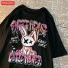 Sweet Heart Rabbit Cartoon Printing Female Washed Short T-Shirt Summer Cool T Shirts Distress Midriff-Baring Clothes