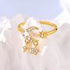 New Korean Star Moon Tassel Ring for Women, Silver Minimalist Leaf Feather Adjustable Finger Ring Jewelry