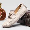First layer cowhide crocodile pattern beanie shoes large size lazy driving shoes British casual shoes genuine leather cowhide men's shoes