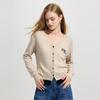 GREEN BELT Women's 100% Wool Slim Fit Embroidered Round Neck Cardigan