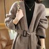 Women's Winter Mid-Length V-Neck Wool Sweater Cardigan