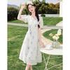 Ledian Illustrated Pleated Lantern Sleeve Dress