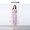 JOY SPEAKER Women's Elegant Printed Square Neck Midi Dress