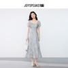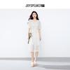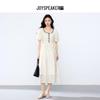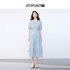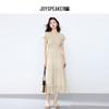 JOY SPEAKER Lace Patchwork Waist-Cinching Midi Dress