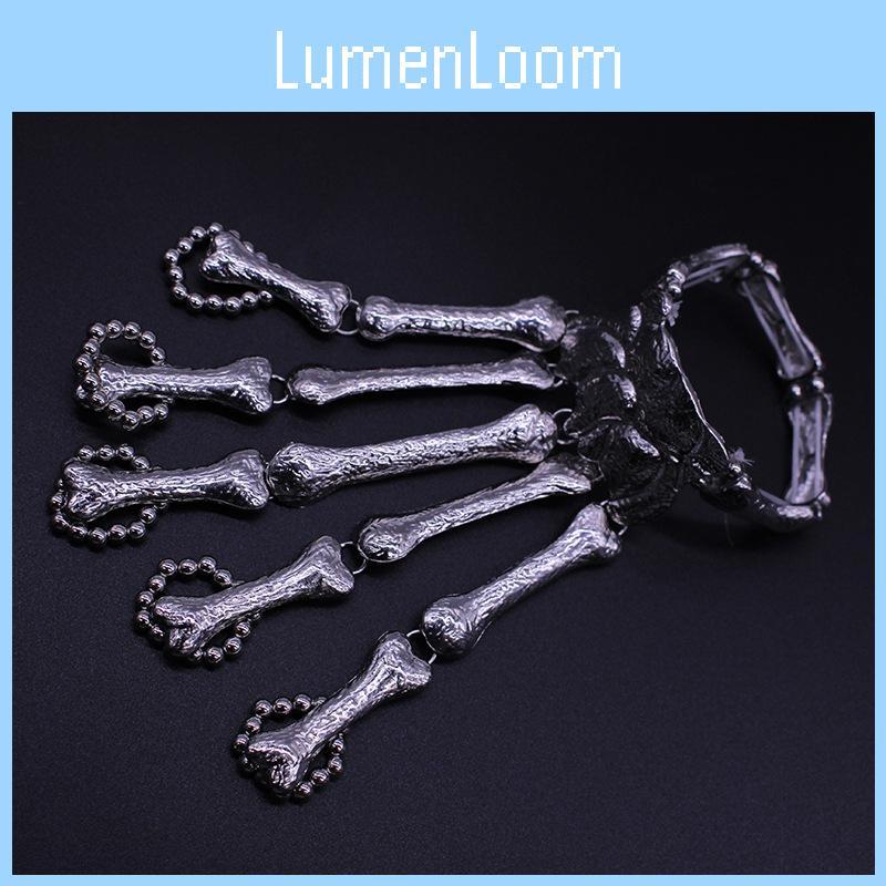 This Halloween-themed bracelet features a striking skeleton finger design crafted from durable alloy with electroplated finishes in gold and silver.it offers a bold, exaggerated skull and bone motif that enhances edgy, punk-inspired fashion statements. Ideal for themed parties or as a unique gift, it adds a distinctive touch to any outfit. Clean with a soft cloth to maintain its shine.