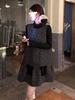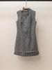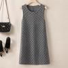 Gray Polka Dot Vest Dress - Women's Autumn/Winter Miu Style, Sleeveless with Bow and Layered Design