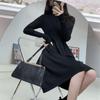 Hepburn-Style High Neck Black Slimming Autumn Dress with Waist-Cinching and French Elegance