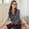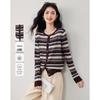UNIFREE 2025 Autumn Preppy Faux Two-Piece Striped Slim Knit Cardigan