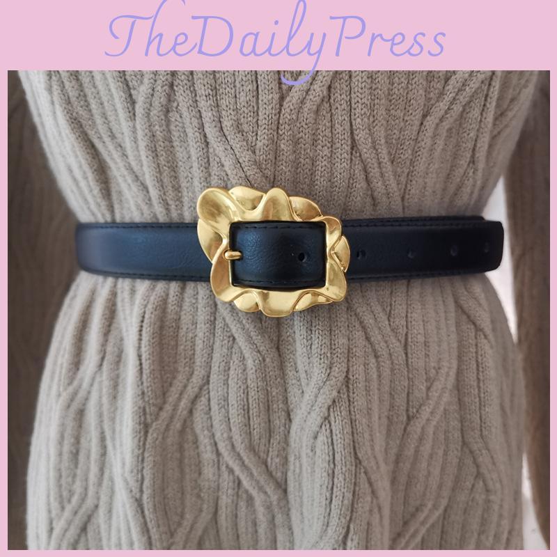 Casual Womens Leather Belt With Flowers Shaped Metal Buckle For Trendy Streetwear And Work Looks