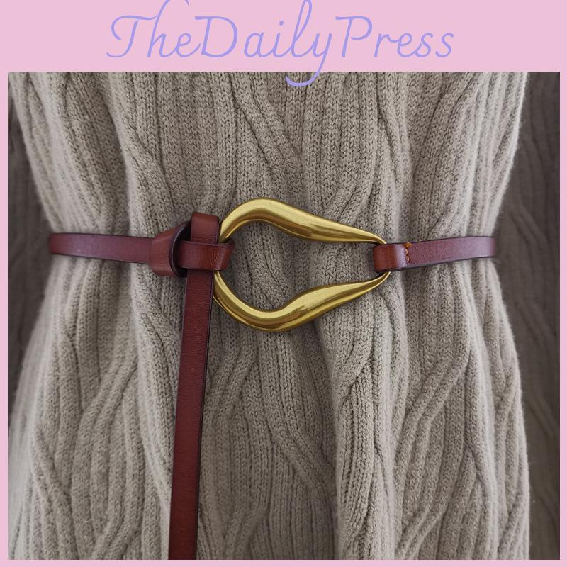 This women's leather waist strap features genuine cowhide material,minimalist design, it offers durable daily wear and fashion versatility. Ideal for casual outings or enhancing street style looks; wipe clean with a damp cloth for maintenance.