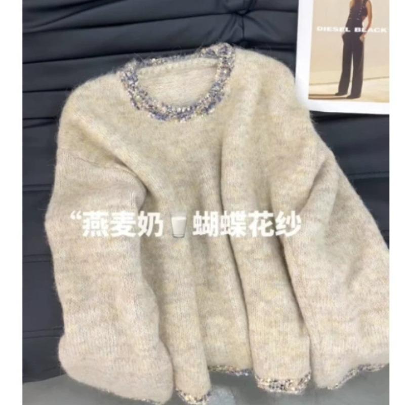 Stylish and unique high-end niche design crew-neck sweater autumn and winter new knitted sweater women's top