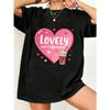 Oversized T Shirt Black Lovely And Caffeinated Heart Coffee Cup Print Casual Wear For Women Summer Outfit Trendy Graphic Tee