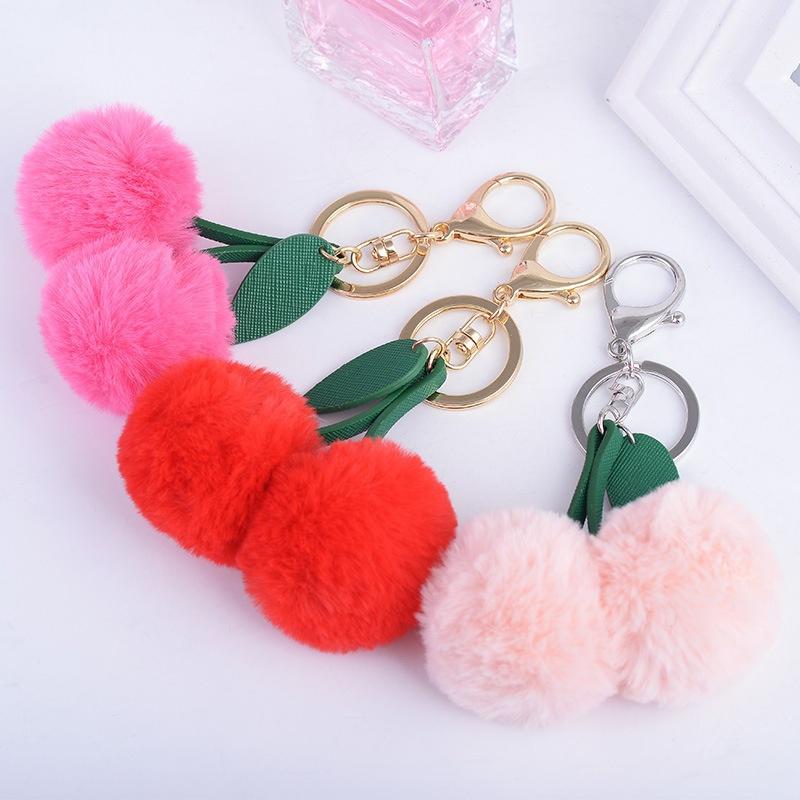 Plush Fur Fluffy Cute Cherry Keyring Pendant Bag Hanging Accessories Fashion Jewelry