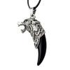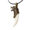 Σκαλιστό σχοινί Ανδρικό κολιέ με δερμάτινο κυνόδοντα Wolf Antique Tooth Faux