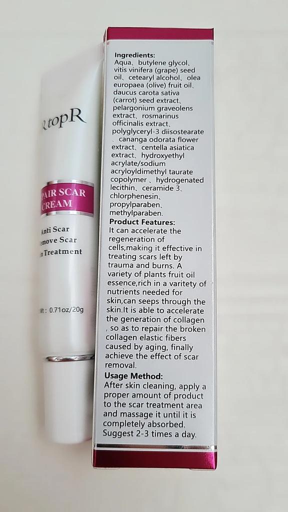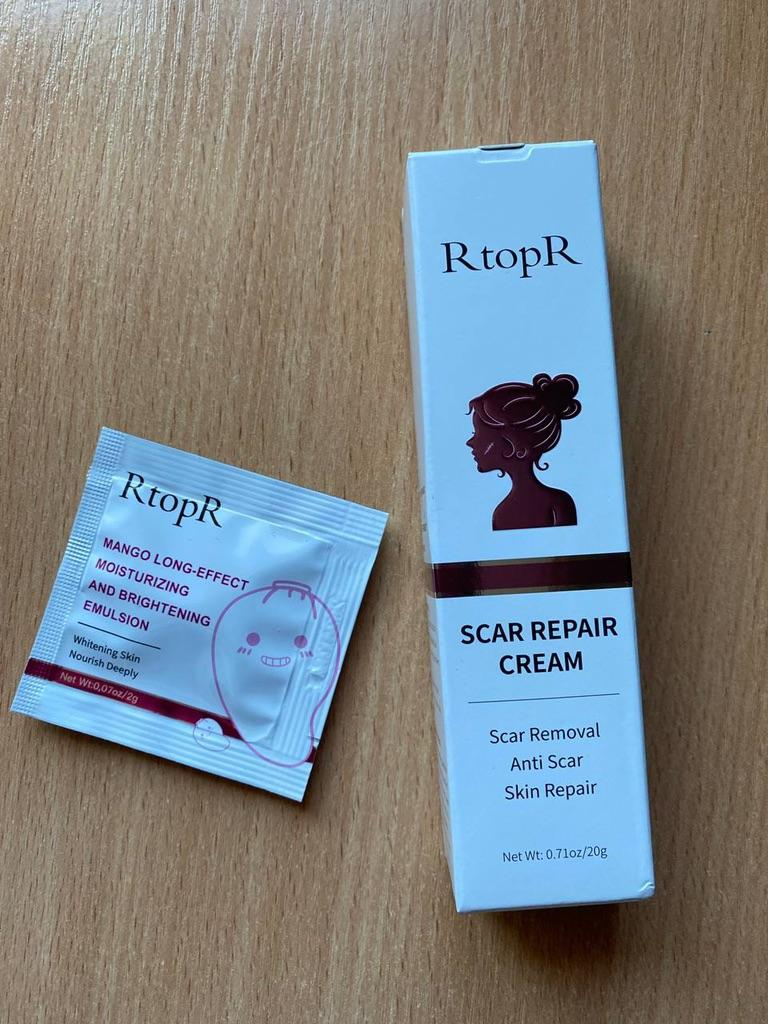 🌺 Scar Cream 🌺 I ordered it for acne scars. I hate it when acne is gone but it leaves its scar for months. I am looking for a good product to fade those away. Actually I ordered many from other brands. ODEO, MeiYanQoing, Mabrem and this one RtopR. I want to check their healing speed and make a comparison. I like this brand especially i like their mango cream texture and smell. 🌺 This cream is for all kinds of scars, like operation scars, traumatic scars, burns, acne scars. 🌺 This cream claims to accelerate regeneration of skin cells. I think it definitely worths to try. Total amount is 20gr.