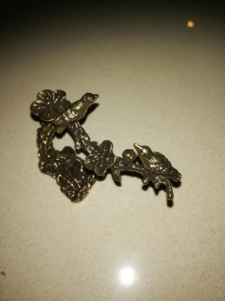 Καθαρό χάλκινο δαμασκηνί Δέντρο Happy Magpie Bird Μινιατούρα Διακοσμητικά αντίκες ορειχάλκινο ειδώλιο κούκου τσαγιού Διακοσμήσεις τραπεζιού Decor Craft