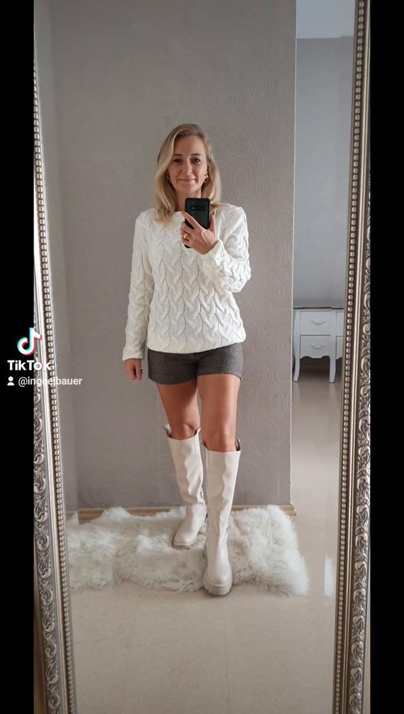 🤍 Beautiful sweater by Rugod 🤍 Photos + Video 📽 Hello everyone 🤗 Isn't the sweater beautiful 😍? I am again extremely satisfied with my selection, because everything is just right for me here 👌💯 🤍 Great quality 🤍 Material is acrylic, soft and comfortable to the body, the sweater can also be stretched very well, the knit is not too tight and breathable. 🤍Beautiful knitting pattern in a cable shape 🤍 The one size fits me very well. The sleeves are a good length and would fit taller women as well. The sweater fits loosely as intended. My measurements are 90-69-93cm. I am 156cm tall. 📏 Sweater dimensions: Brust: ca. 100 cm Overall length: approx. 70 cm Sleeve length 65 cm. 🤍 color: Wide range of colors 12 colors. I chose the color white. It's not pure, bright white, but has a warm yellow tinge, very subtle. 🤍 Conclusion: I think this sweater is great for the cold season. It can be perfectly combined with many things. I'm happy with the sweater. Thanks Joom, thanks to the seller ❤ your Inge