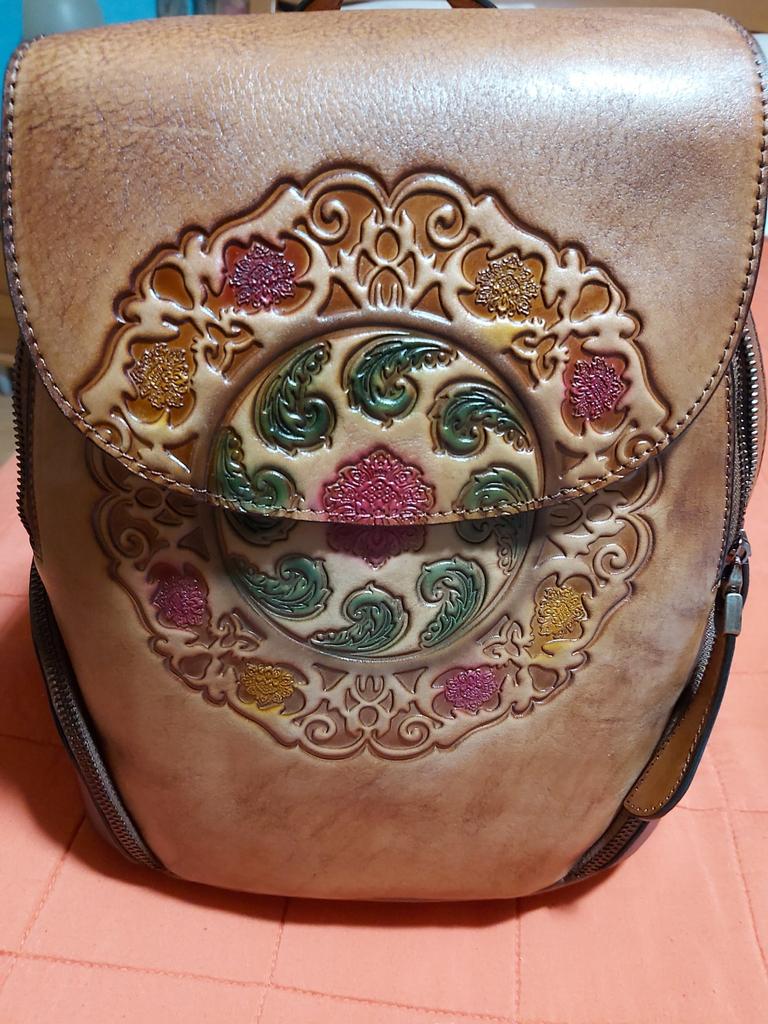 Johnature Ρετρό γνήσιο δέρμα σακίδιο πλάτης Γυναικεία τσάντα χειροποίητη με ανάγλυφο φυσικό δέρμα αγελάδας Τσάντες ταξιδιού μεγάλης χωρητικότητας