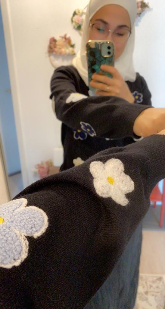 Pretty flower sweater 🤩 🌺🌼🏵️💗 I love it! It's soft and comfortable. It has beautiful embroidered flowers. Also available in black! Shipping was a bit long this time, it almost took a month to arrive. But it's well worth the wait!! 💕