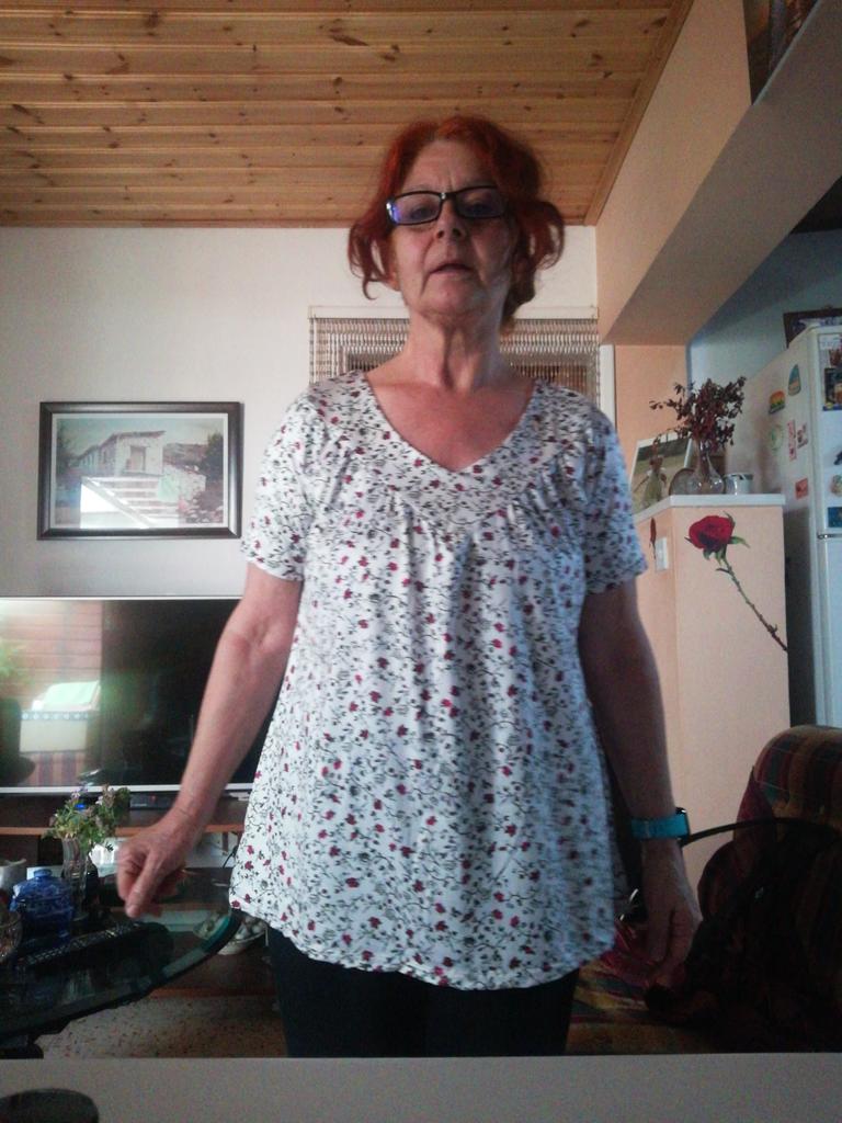 Γυναικείο μπλουζάκι με φαρδύ εμπριμέ, κοντομάνικο, με λαιμόκοψη σε σχήμα V, Casual Summer