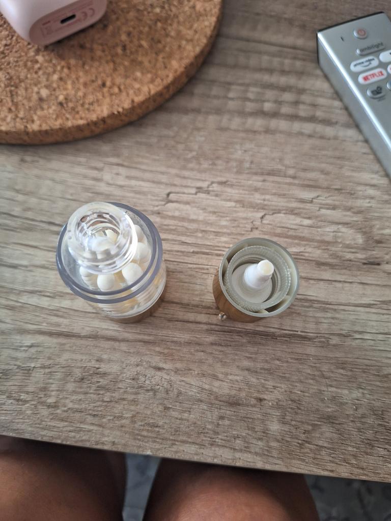 Εξαιρετικό προϊόν! Το φόρεσα κι ένιωσα μετά από λίγο μια υπέροχη σύσφιξη στο δέρμα μου. Έχει τέλεια υφή, χωρίς να κολλάει. Αλλά...η αντλία του δε δουλεύει... Δεν έχει σωληνάκι στο καπάκι, οπότε το ξεβίδωσα για να πάρω προϊόν με οδοντογλυφίδα. Η εταιρεία πάντως μόλις ενημερώθηκε επέστρεψε άμεσα το μισό ποσό, καθώς μπορώ να χρησιμοποιήσω το προϊόν. Δε κάνει αλλαγές, μόνο επιστροφή ποσών, οπότε έπραξαν με τη σύμφωνη γνώμη μου , το παραπάνω. Άψογη εξυπηρέτηση και άμεση, όποτε προέκυψε πρόβλημα 🥰