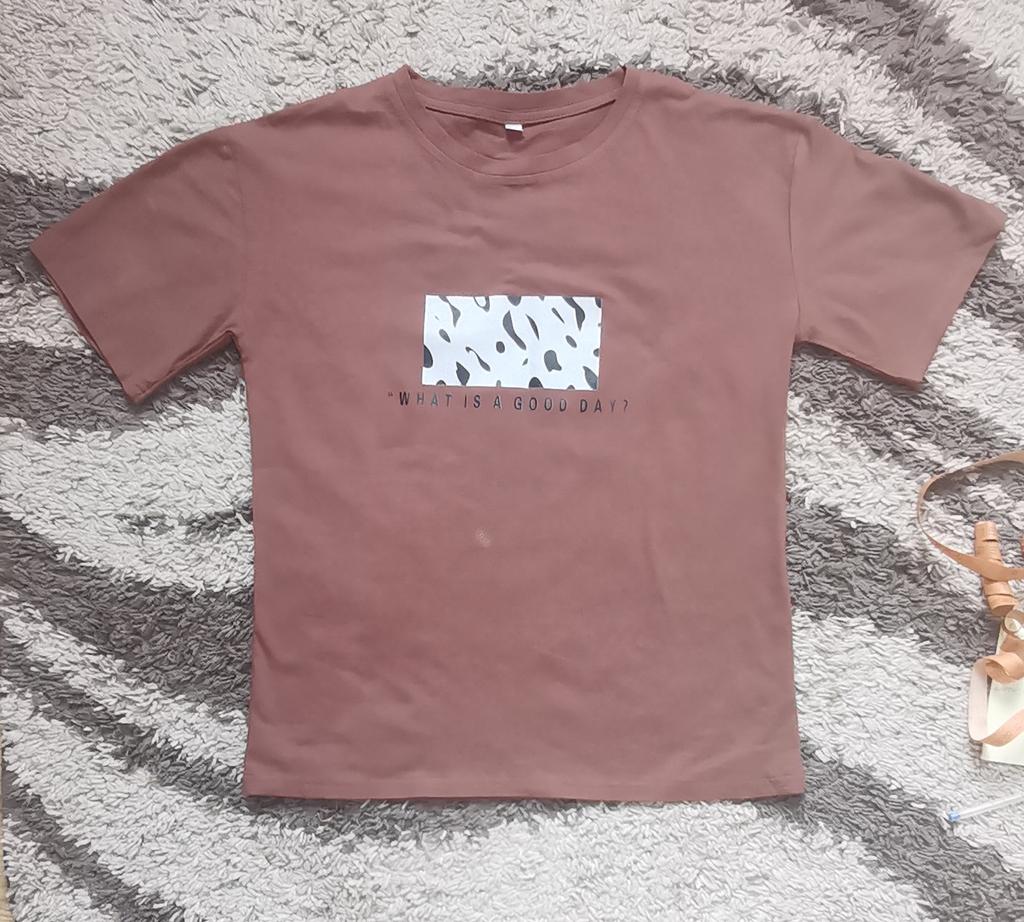 Short sleeve t-shirt 👚 It is a 100% cotton t-shirt of very good quality, short sleeves and a crew neck. The print is a vinyl, also very high quality. The t-shirt comes in many different colours, it will surely be difficult for you to decide because they are all very pretty. 😃😃 I have taken the XXL size as indicated by the seller and it is very good for me 👍. I usually wear size L (I'm 1.71 cm 📏) I guess size L would have been good too, but I like wide t-shirts. The only downside I have is the time it took to arrive 📦⏰, almost 2 months. Even so, it is a fantastic shirt and I think I will repeat because they have other models that are also very nice. Don't hesitate to ask me any questions you have!