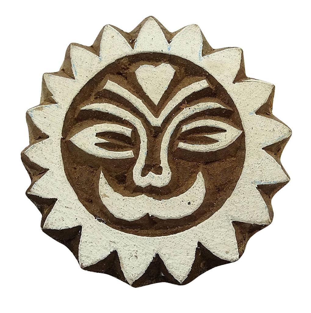 Textile Printing Stamp On Apparel Fabric Border Handmade Sun Design Wooden