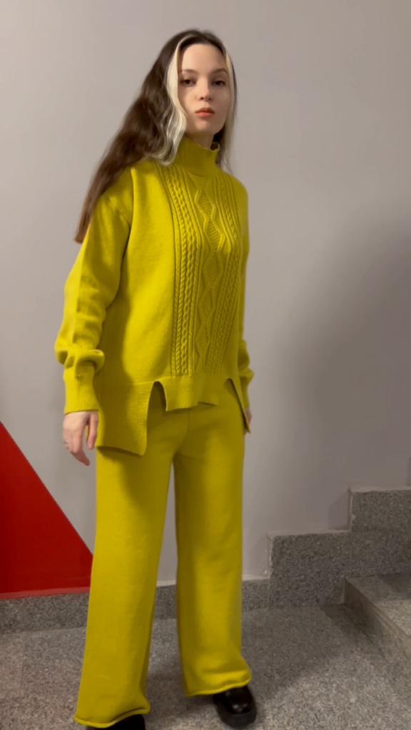 Φθινοπωρινά Σετ πουλόβερ με μονόχρωμο μονόχρωμο και μονόχρωμο με μακρυμάνικο γιακά για γυναικεία κοστούμια πουλόβερ