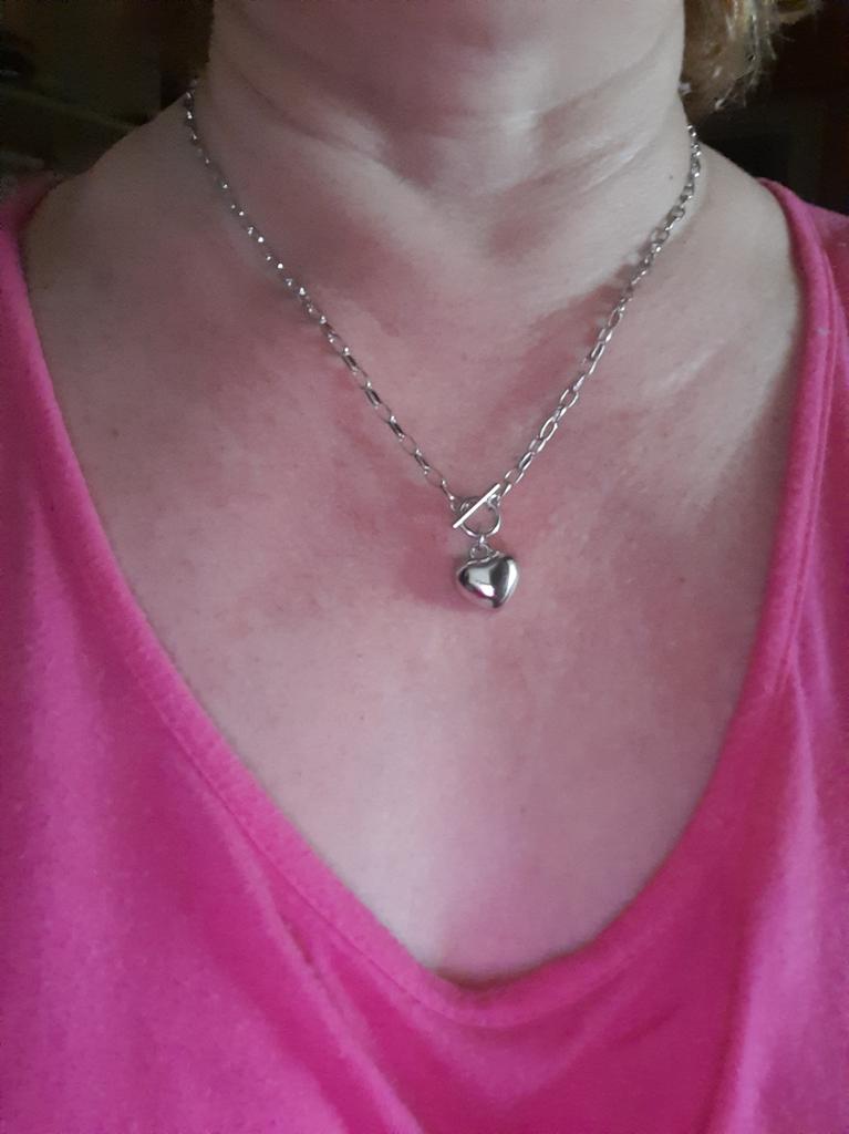 ANENJERY Women'S Fashion Jewelry Simple Love Heart Charm Pendant Necklace OT Clasp Chain Necklace For Women Jewelry Gifts S-N612