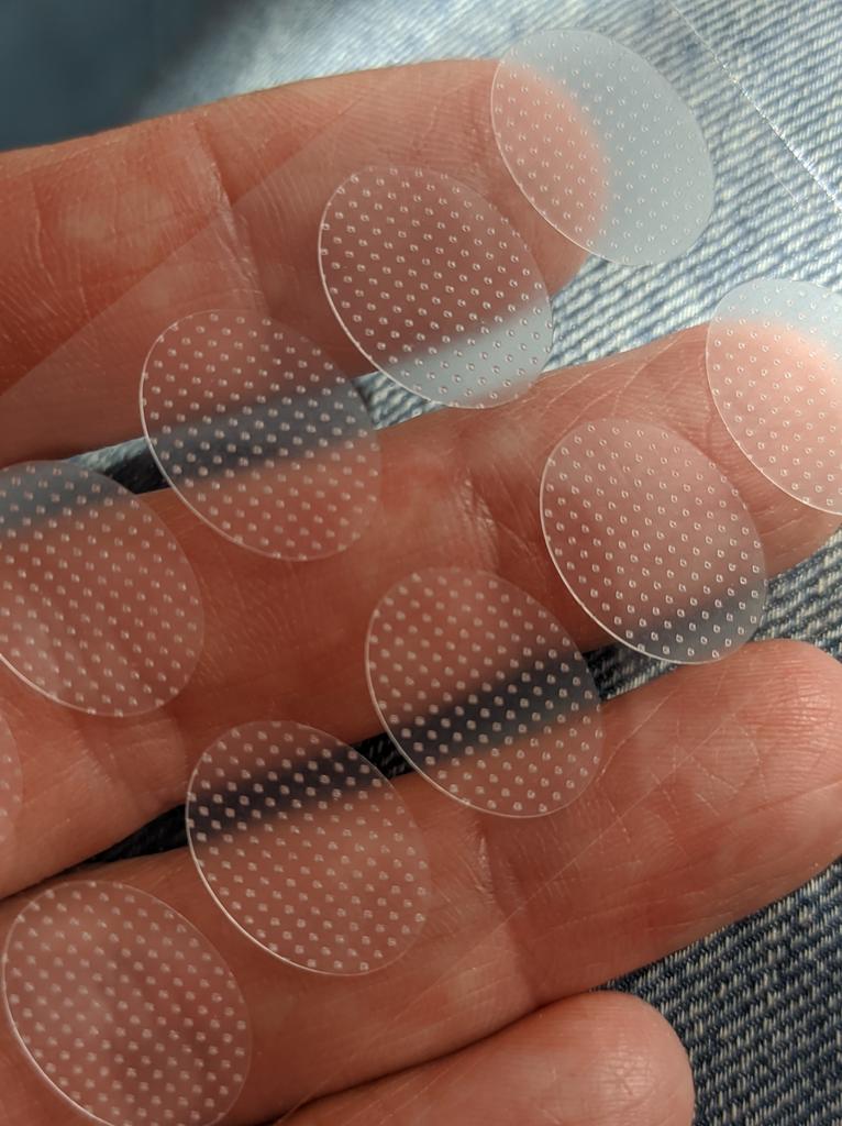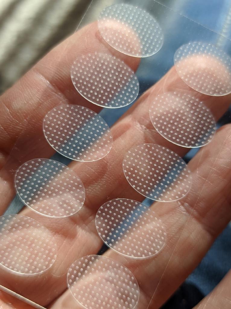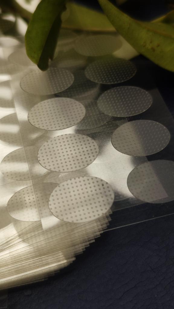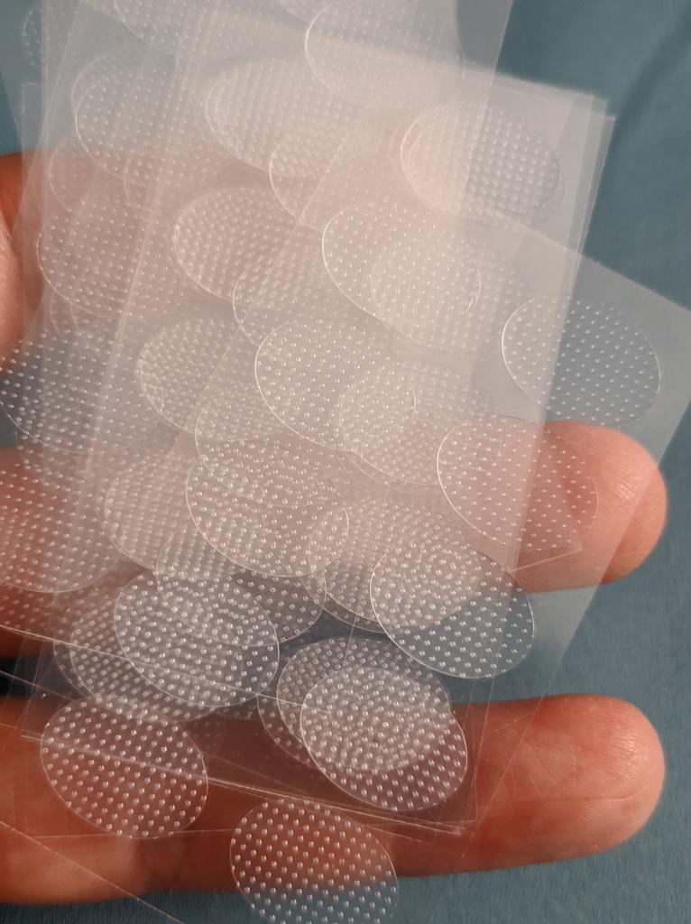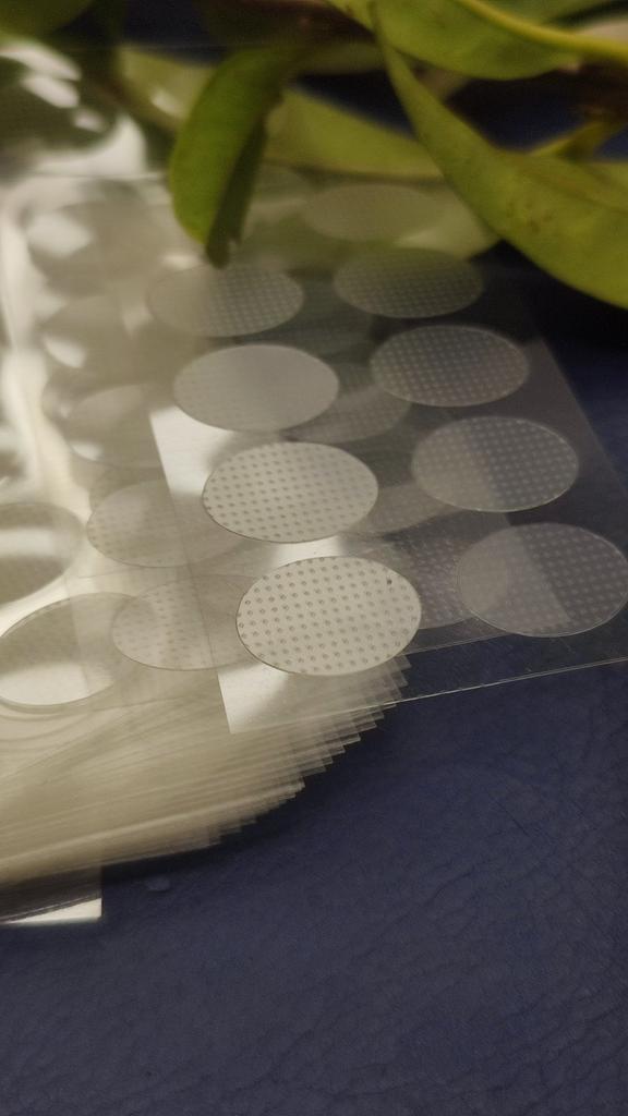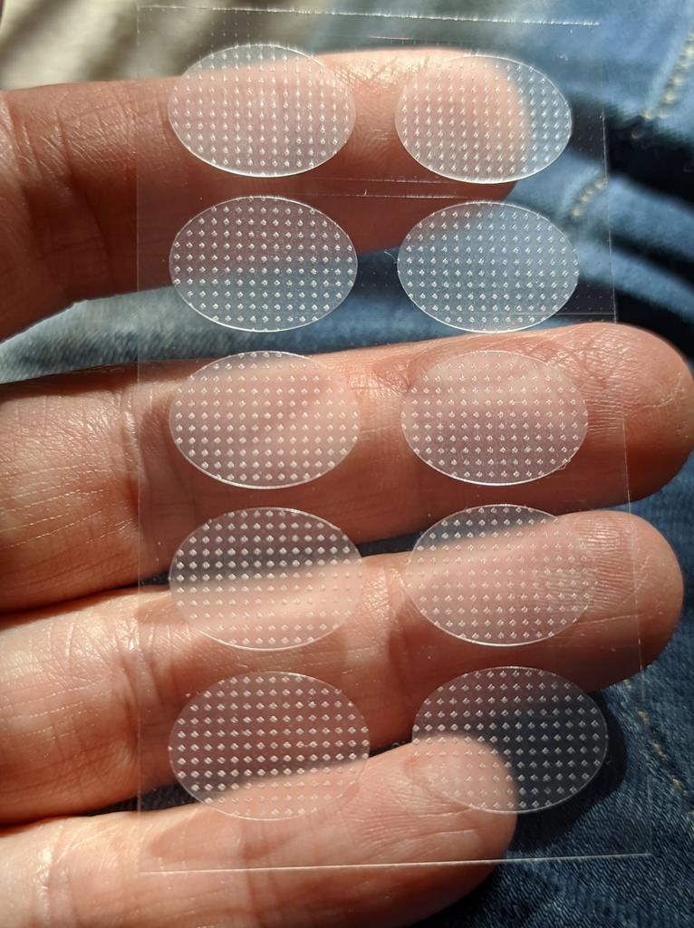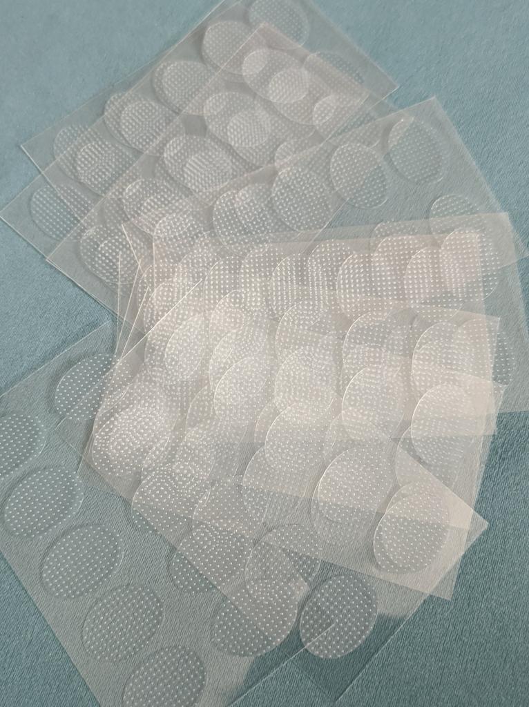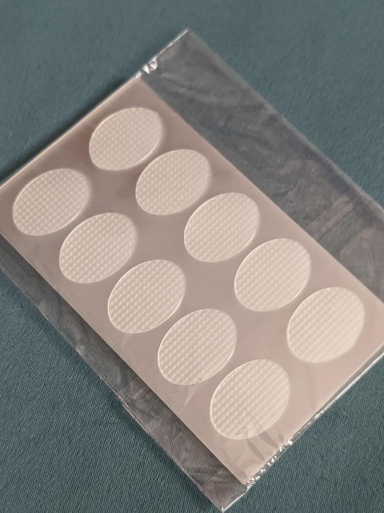 Fine stickers that are not visible behind the ear. Come firmly packaged and therefore very usable. Especially useful with heavier earrings.