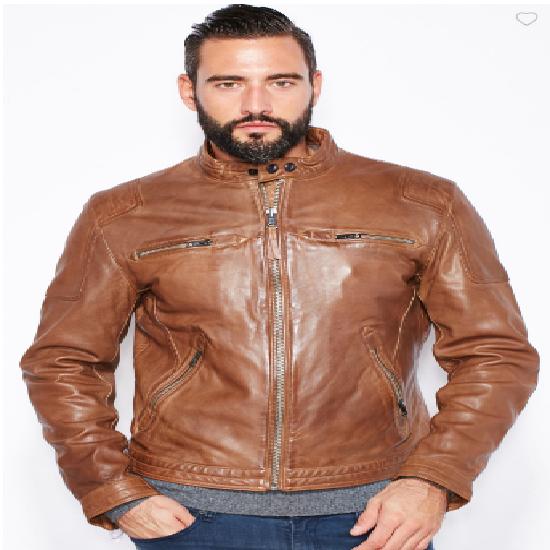 NOORA Mens Tan Brown Leather Jacket | Brown Motorcycle Jacket | Classical Western Jacket