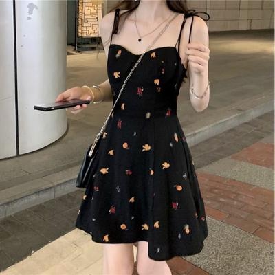 Korean Dress Sling Dress Low Cut Sexy Hips Print Ultrashort Suspenders