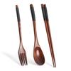 Winding Wooden Spoon Fork Chopsticks Three-piece Set Long Handle Solid Wood Adult Portable Spoon Fork Tableware