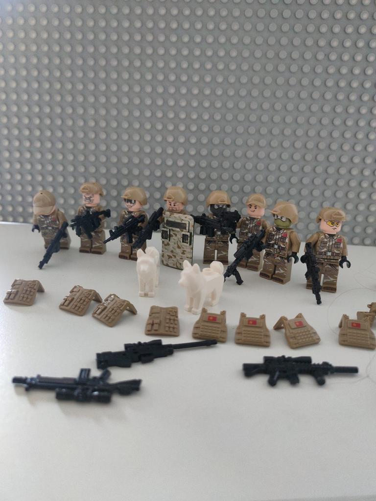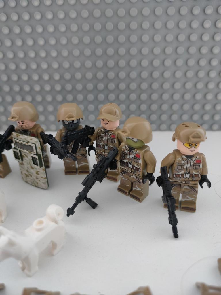 Building Blocks Set, Assault Border Patrol Construction Minifigures It's a great purchase that I really liked. 👍👍👍👌👌😘. 📦 Package Content: Building Block Set, Assault Border Patrol. Armament Set. 2 dogs. 👍Pros: Delivery to Spain in 21 days. ✈️ Super well packed for the trip. its quality is good. 8 soldier minifigures. 2 dogs. Set of weaponry submachine guns and assault rifles. Very good collection of soldier blocks. Recommended for children over 6 years old and adults. 👎Cons: Not recommended for children under 5 years of age, due to having small parts that could be swallowed. .