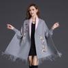 Νέα Γυναικεία Ζακέτα πουλόβερ Φθινοπωρινό και Χειμώνα Κέντημα με άνθη δαμάσκηνου με μανίκια και φούντες Γυναικείο παλτό από κάπα Πλεκτό Ζακέτα