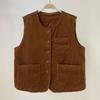 Johnature Spring Japanese Corduroy Sleeveless Vests Casual All Match Solid Color Pockets Women Vests