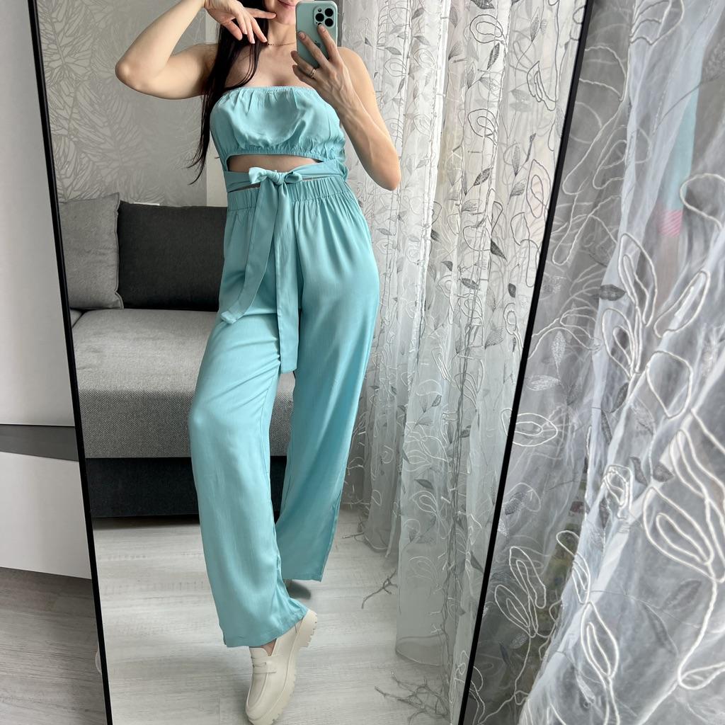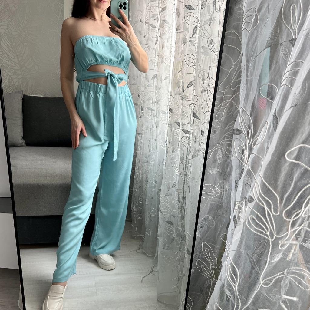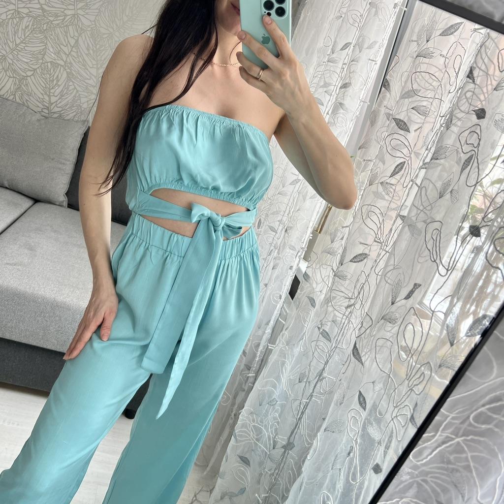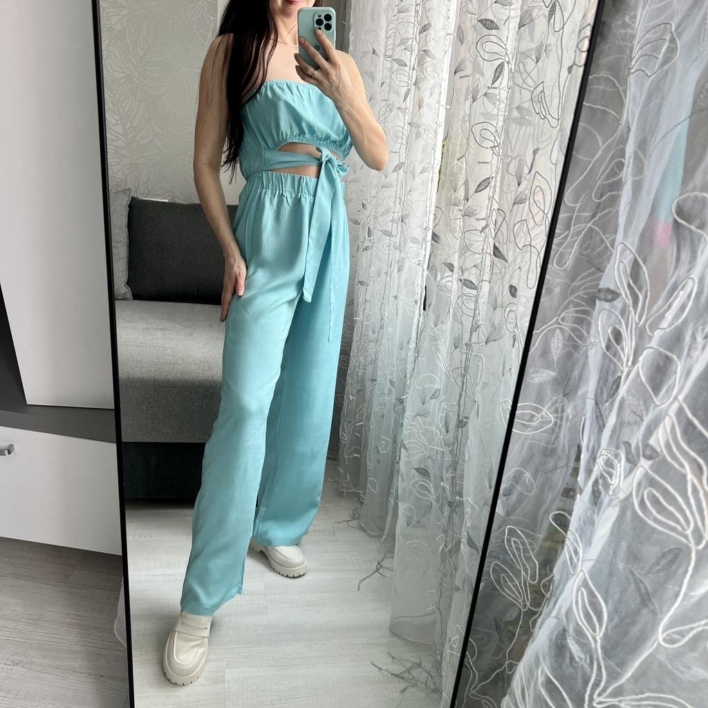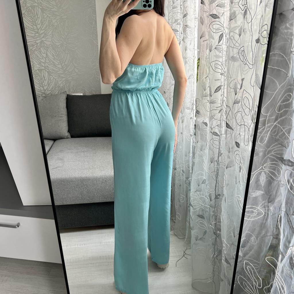 ♡ airy bandeau jumpsuit ♡ 💥𝗟𝗶𝗲𝗳𝗲𝗿𝘇𝗲𝗶𝘁 3 weeks 💥𝗟𝗶𝗲𝗳𝗲𝗿𝘂𝗺𝗳𝗮𝗻𝗴 The scope of delivery includes 1 jumpsuit in the appropriate size and colour. It is available in blue, green, white or cream. Sizes S, M, L, XL or XXL are available. I ordered size M in blue I wear size 36 to 38. I weigh 63 kg over 172 cm. Bra: 75D Since the jumpsuit has very little stretch, it just fits me... I have the feeling that the jumpsuit would slide down when I stretched my arms... 😯 I think the jumpsuit fits better for smaller people. But otherwise from my body measurements (chest, waist and bottom) the jumpsuit fits very well. 👍 💥𝗤𝘂𝗮𝗹𝗶𝘁ä𝘁 The jumpsuit is not completely opaque, I have the feeling that my breasts and panties are showing through. In the upper part it is very stretchy. Not with the butt. I think the length of the garment is perfect for me. For material composition : 95% Polyester and 5% Spandex But it feels very comfortable on the skin, comparable to linen fabric. 💥𝗙𝗮𝘇𝗶𝘁 Very nice jumpsuit, but slightly see-through and definitely too short for people over 172 cm. Hence a star deduction.