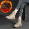 Johnature Γυναικείες μπότες Γνήσιο δέρμα Χειμερινά κορδόνια με στρογγυλά γυναικεία παπούτσια Ράψιμο χειροποίητα ρετρό μποτάκια