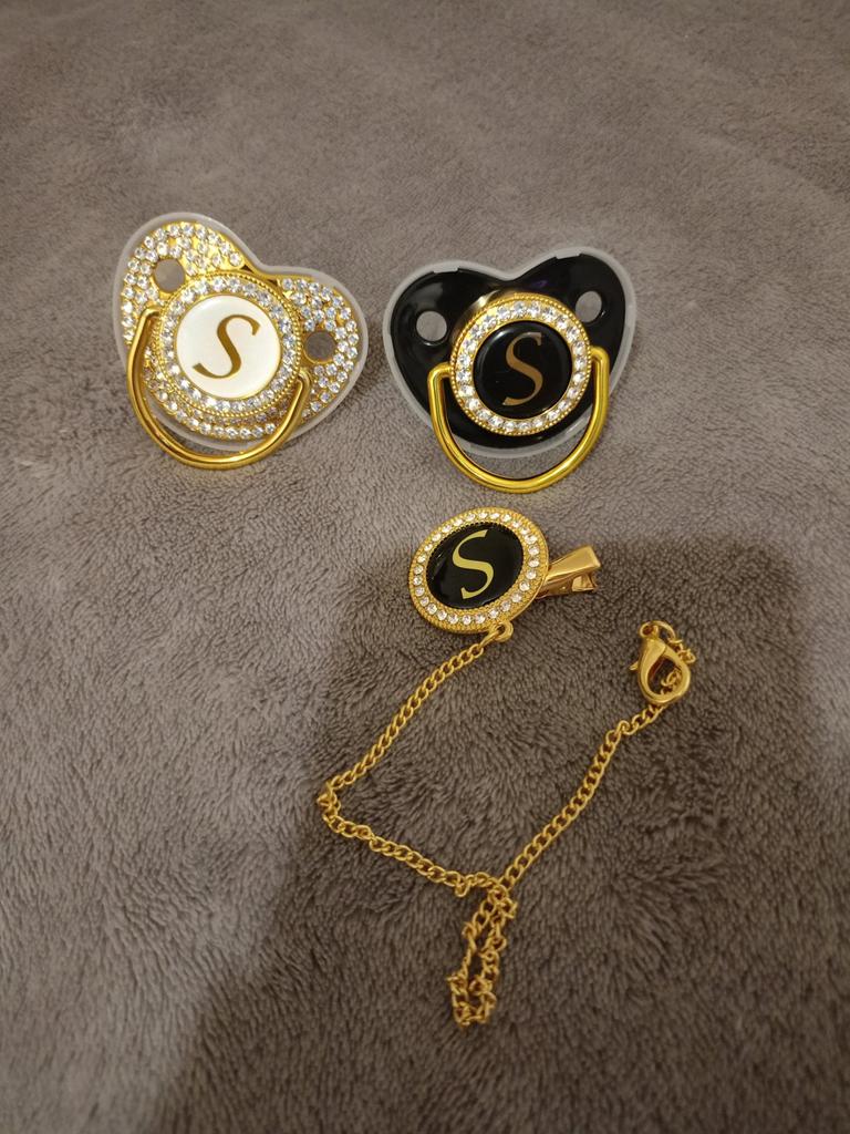 Χρυσή Ζιργκόν Νεογέννητη Πιπίλα με Αρχικά Όνομα Καπακιού Εξατομικευμένες Πιπίλες για μωρά Σιλικόνη Βρεφικό Dummy Νέο Δώρο ντους μωρού