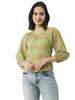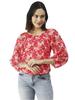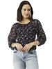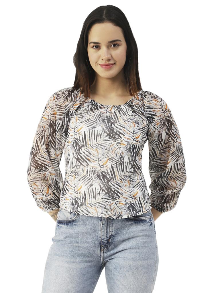 Moomaya Printed Top Round Neck Sheer Long Sleeve Tops For Women