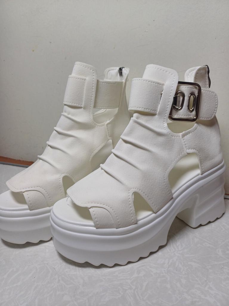TUINANLE Γυναικεία πέδιλα Καλοκαιρινά ψηλοτάκουνα Γυναικεία χονδρά παπούτσια Πλατφόρμα Wedges Λευκά σανδάλια με φερμουάρ