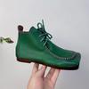 Johnature Ρετρό γυναικείες κοντές μπότες με κορδόνια από γνήσιο δέρμα Χειροποίητα τετράγωνα ίσια μποτάκια