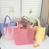 Νέα ιαπωνική καρό βαμβακερή φορητή τσάντα μεσημεριανού γεύματος Κορεατικού στυλ Παιδικές τσάντες μεσημεριανού γεύματος για πικνίκ Γυναικεία απλή μικρή τσάντα