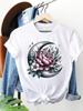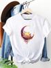 (Asian Size) Women Print Tee Moon Flower Lovely 90s Trend Top Clothing Fashion Tshirt Lady Female Casual Short Sleeve Graphic T-shirt