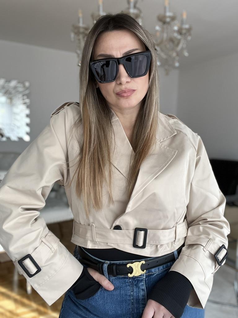 Χακί Cropped Trench Γυναικείο μακρυμάνικο σακάκι με κομμένο σχέδιο Chic Lady High Street Casual Loose Παλτό Top Γυναικείο 2023 Νέο